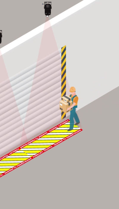 Projects a clear and visible animated line of dots, alerting operators and pedestrians.
